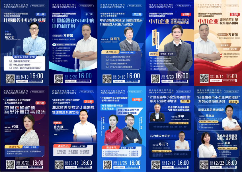 为加强中小企业计量人才培训,助推中小企业计量管理能力提升,缓解中小企业所面临的困难,助力中小企业成长。省市场监管局计量处2022年8月-12月开展十期“计量服务中小企业纾困提能”系列公益微课培训圆满结班。本次培训由湖北省市场监管局主办,湖北省市场监督管理培训中心承办,历时4个月,覆盖全省2000多家企业,解决实际问题众多,培训一线计量人员1.8万人次,直播间热度41.1万,创历史新高。