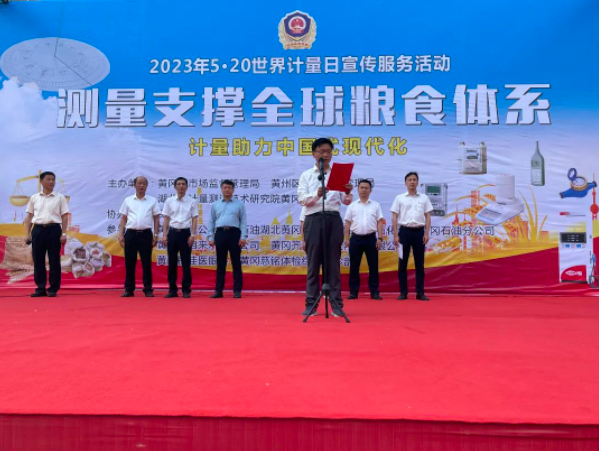 为庆祝第24个“世界计量日”,5月19日,黄冈市市场监管局、黄州区市场监管局、省计量院黄冈分院在黄商购物广场联合主办了5.20世界计量日宣传服务活动。黄冈市政府副秘书长吴元西出席活动并致辞,活动由黄冈市市场监管局党组成员、总工程师徐锦峰主持。黄商集团、黄冈供电公司、中石化黄冈分公司、中石油黄冈销售分公司、黄冈市自来水公司、黄冈齐安中燃天然气有限公司、黄冈视佳医眼科等7家单位参加活动。