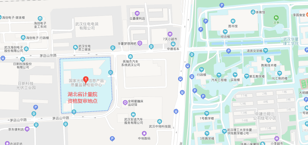 二、资格复审地点及乘车路线:湖北省计量测试技术研究院光谷基地A区4楼学术交流厅。地址:武汉市东湖技术开发区汽车电子产业园茅店山中路2号。请乘坐市内公交362、405、586、785、789、810、903、715路、有轨电车T1到“华夏学院”站下车,沿武汉华夏理工学院正大门对面的茅店山路前行,第一个路口左转即到。