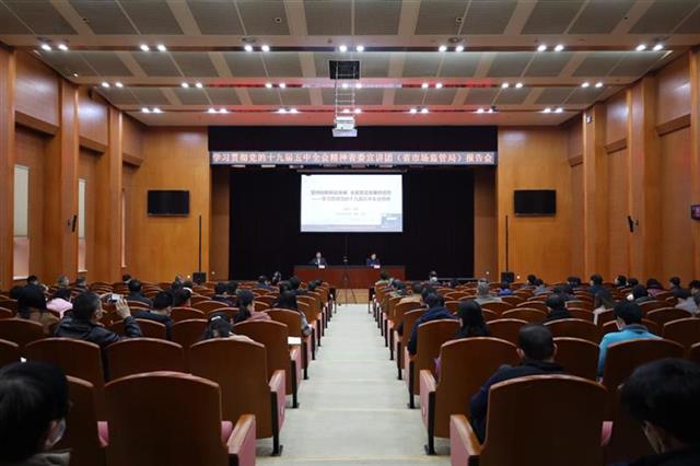12月10日,学习贯彻党的十九届五中全会精神省委宣讲团走进省市场监管局。省委宣讲团成员、武汉大学质量发展战略研究院院长程虹作宣讲报告。